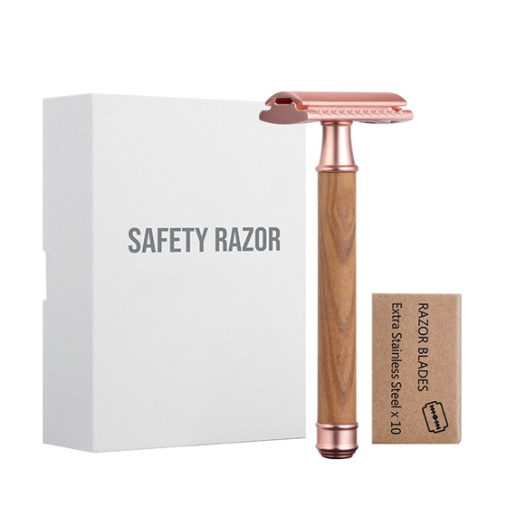 Bộ dao cạo râu cán gỗ kèm lưỡi dao có thể sử dụng để cạo râu và lông nách, hiệu quả cao và không gây hại.