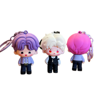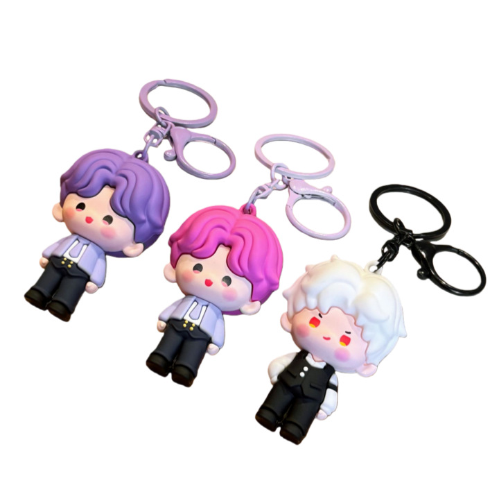 Móc khoá thần tượng 3D bằng nhựa PVC theo yêu cầu là các sản phẩm nhân vật ba chiều được chế tạo từ chất liệu PVC mềm dẻo. Những mô hình thần tượng (idol) hoặc nhân vật hoạt hình sử dụng PVC với bề mặt có cảm giác như cao su, mang lại độ đàn hồi tốt. Nhờ đặc tính nhẹ và bền, chúng có thể giữ nguyên hình dáng mà không lo bị cong vênh hay nứt gãy. Chính vì vậy, PVC mềm ngày càng được ưa chuộng trong việc sản xuất các nhân vật anime, truyện tranh và nhân vật phim, fan goods đồng thời rất phù hợp cho việc sưu tầm. Khi kết hợp cùng móc khóa mạ niken, chúng trở thành những chiếc móc khóa cao su mini độc đáo và tiện dụng.